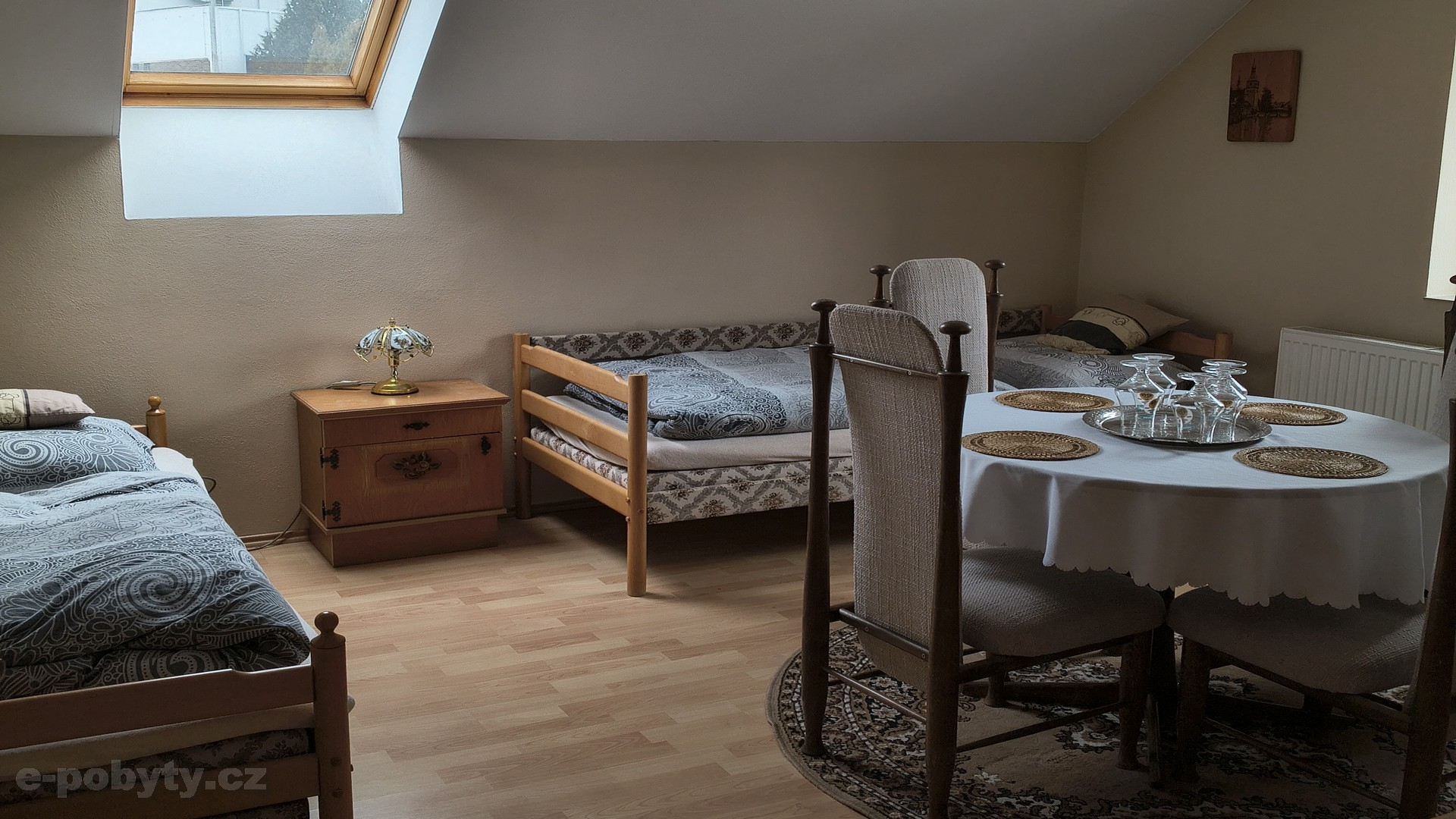 V jednom pokoji je manželská postel pro 2 osoby, ve druhém 2 samostatná lůžka, možné je zapůjčení dětské postýlky.