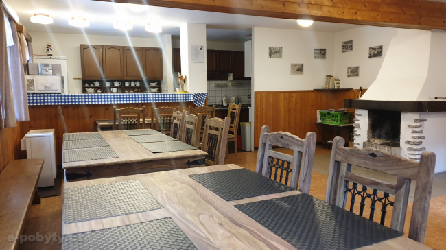 Uvnitř chalupy je velká společenská místnost, která slouží zároveň jako jídelní místnost se stoly, lavicemi a krbem. Na společenskou místnost přímo navazuje samostatná kuchyň vybavená kuchyňskou linkou, 2× sporák, myčka, mikrovlnná trouba, 2× lednice, 2x varná konvice, 2x toustovač a nádobí pro běžné vaření, pečení a stolování. V přízemí jsou dále umístněny dámské a pánské toalety a koupelny se sprchovým koutem. Chalupa disponuje 23 lůžky v sedmi pokojích. Pokoj č. 1 je situován v přízemí s kapacitou 4 lůžek. V prvním prvním patře objektu je umístněno 6 dalších pokojů. Každý pokoj je vytápěn eletrickým vytápěním WAW kamny. Na chodbě je umístěno další 2xWC.