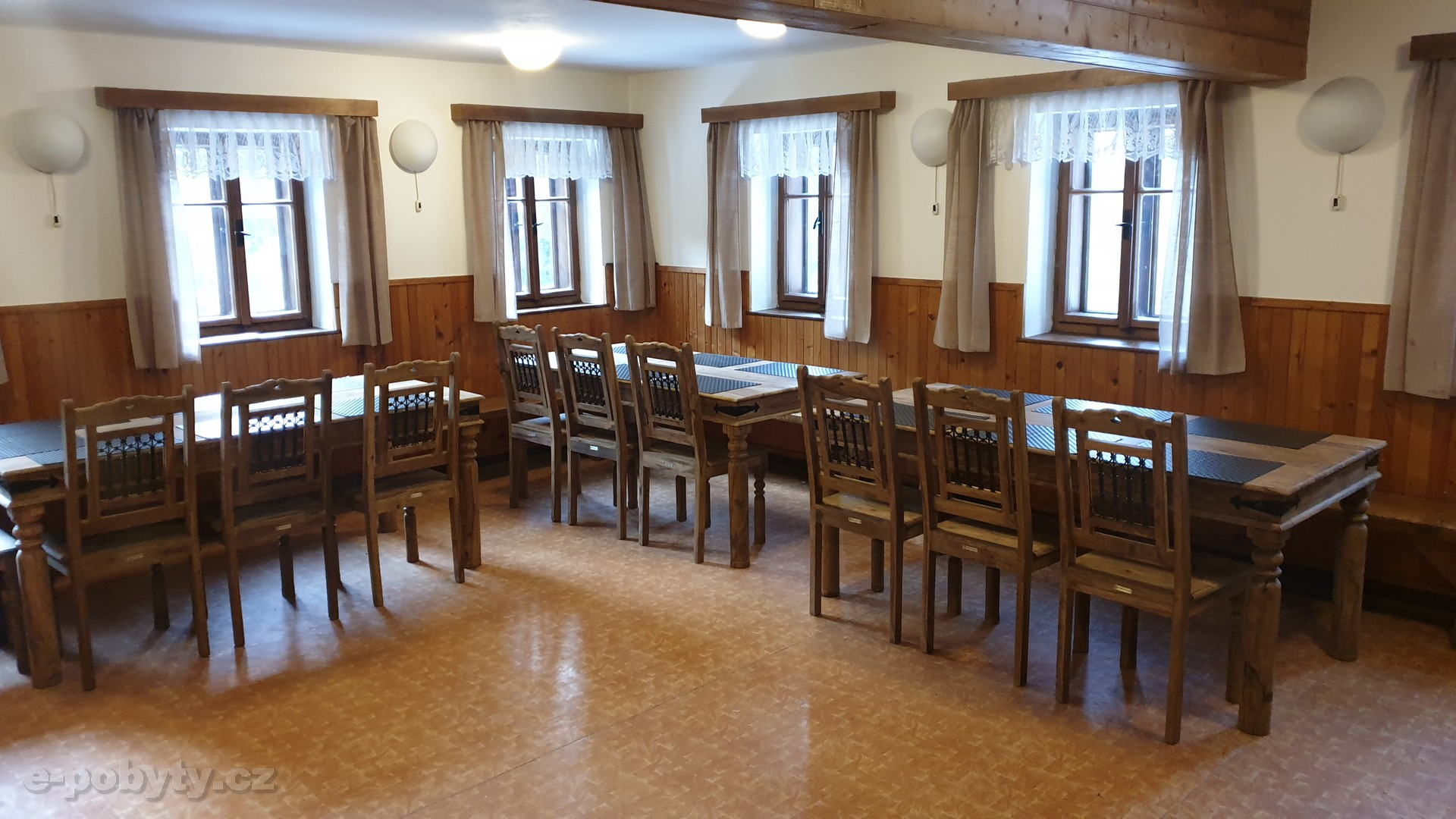 Ložnice a pokoje: V přízemí 1 x čtyřlůžkový pokoj, v prvním patře 1 x pětilůžkový pokoj, 1 x čtyřlůžkový pokoj, 2 x třílůžkový pokoj a 2 x dvoulůžkový pokoj. maximální celková kapacita 23 lůžek.